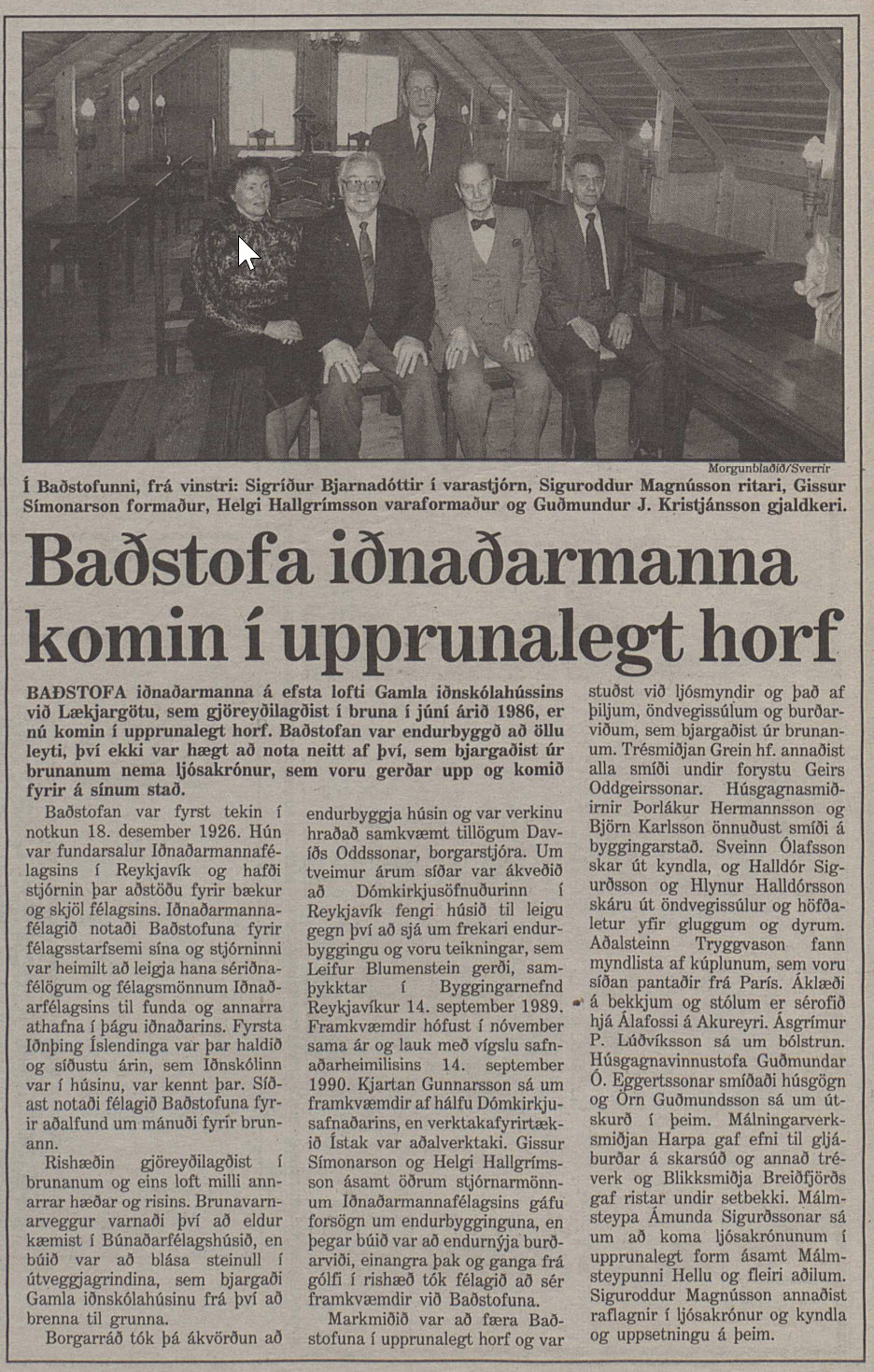 Frétt MBL um bruna Baðstofu iðnaðarmanna frá 5. apríl 1991